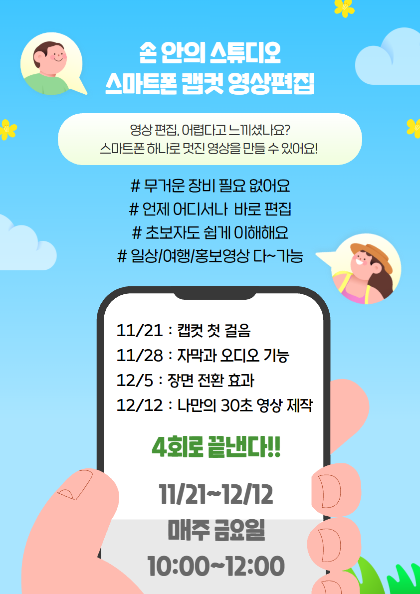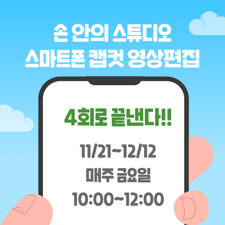 손 안의 스튜디오 : 스마트폰 캡컷 영상 편집 11/21~12/12 금요일(4회) 10:00~12:00